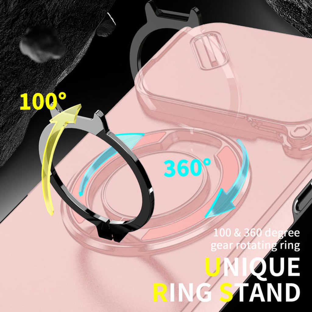 Grazie all'anello metallico sul retro della custodia, puoi appoggiare comodamente il telefono su qualsiasi superficie. Guarda video, effettua chiamate o lavora senza dover tenere il telefono in mano. Il supporto ruota di 360 gradi, offrendo la massima flessibilità.