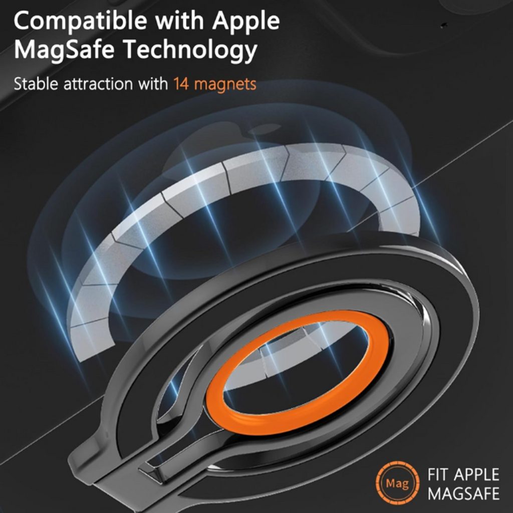 Accessorio elegante e pratico per ogni iPhone con tecnologia MagSafe. Questo anello magnetico combina forte adesione, rotazione a 360° e design elegante, garantendo un utilizzo comodo e sicuro del telefono in ogni situazione.